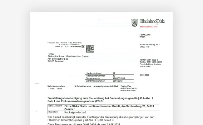 Freistellungsbescheinigung zum Steuerabzug bei Bauleistungen